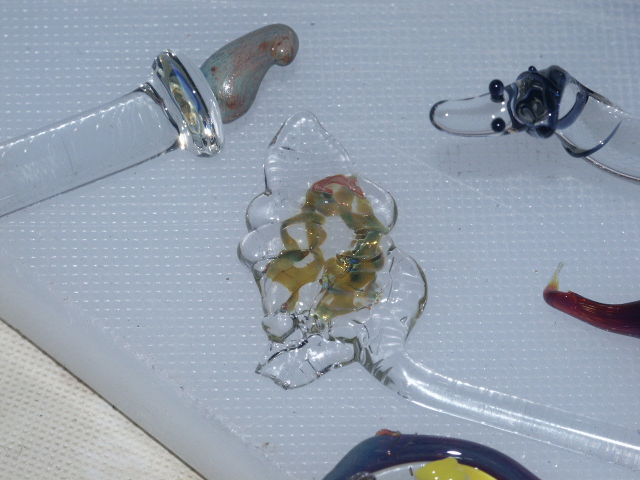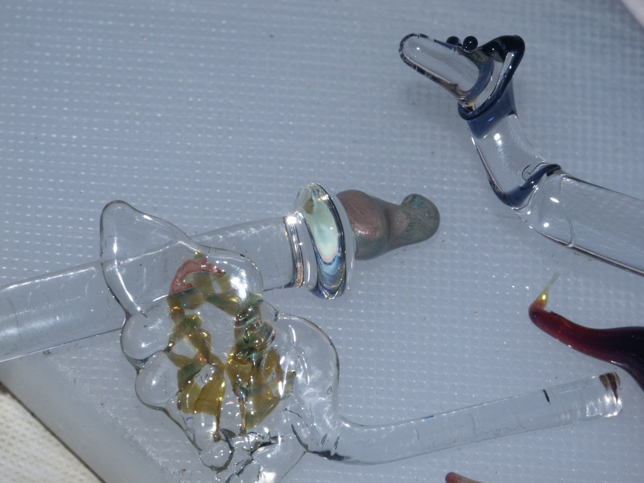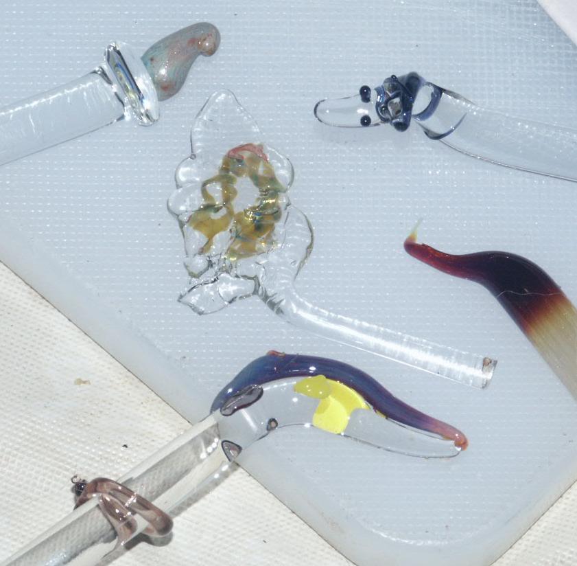 These are examples of functional artisan glass. They are all made of borosilicate glass for strength and durability. Borosilicate glass is familiar under the trademarks Pyrex (Corning) and Kimax (Kimble). Like the kitchen utensils made of similar glass, dropping them on the floor is not recommended, but they will survive drops on wood or linoleum floors.
