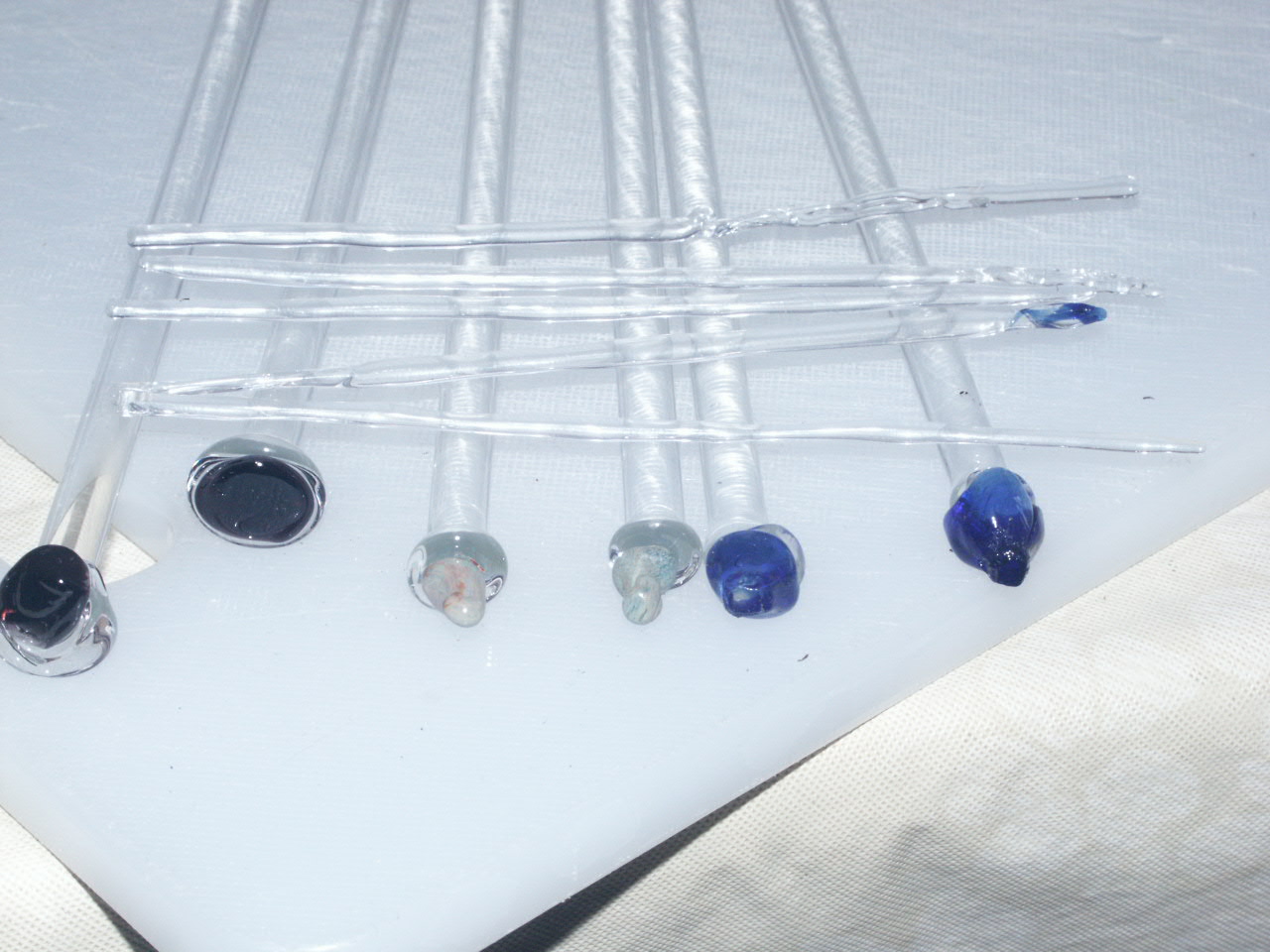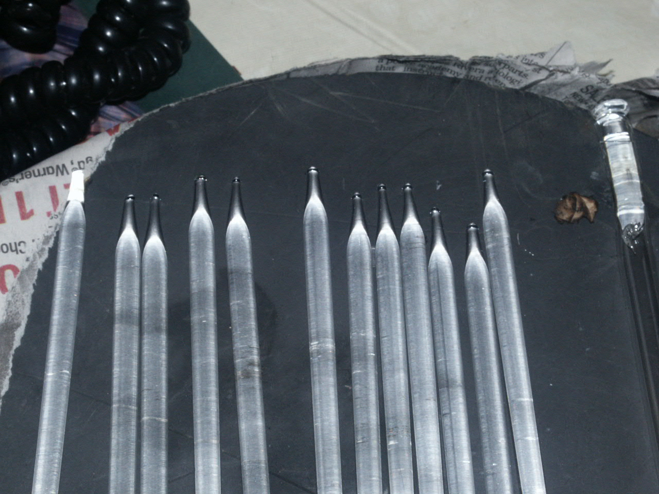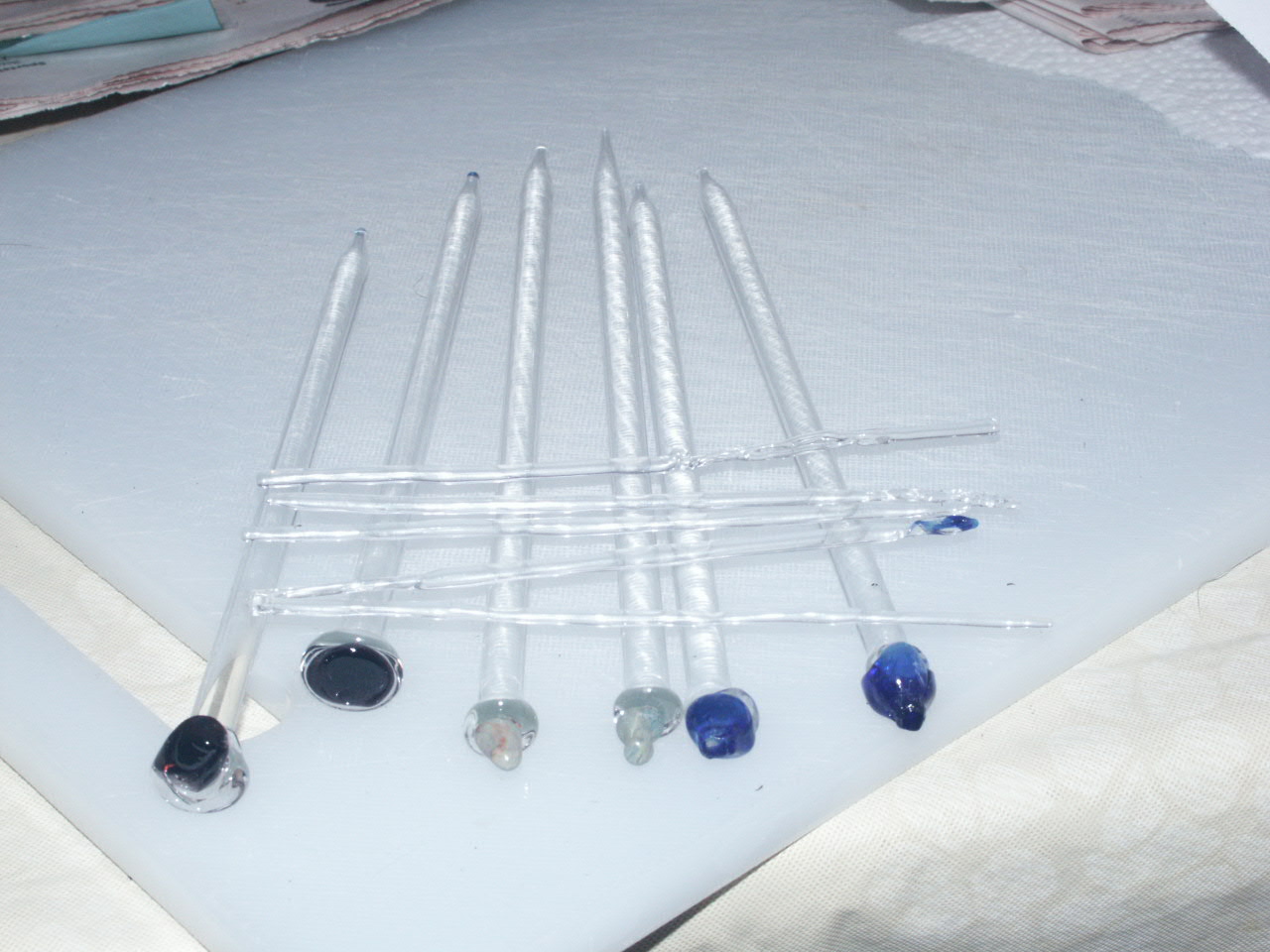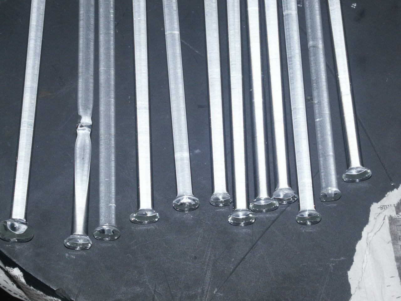 Closeup Points of First Run of Plain Pyrex Knitting Wands