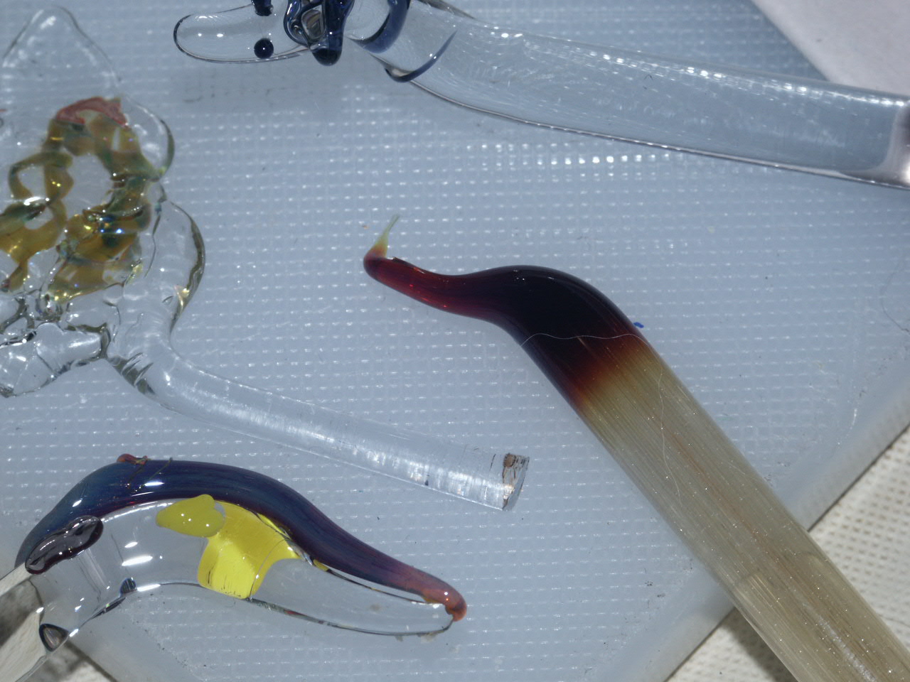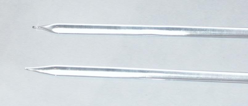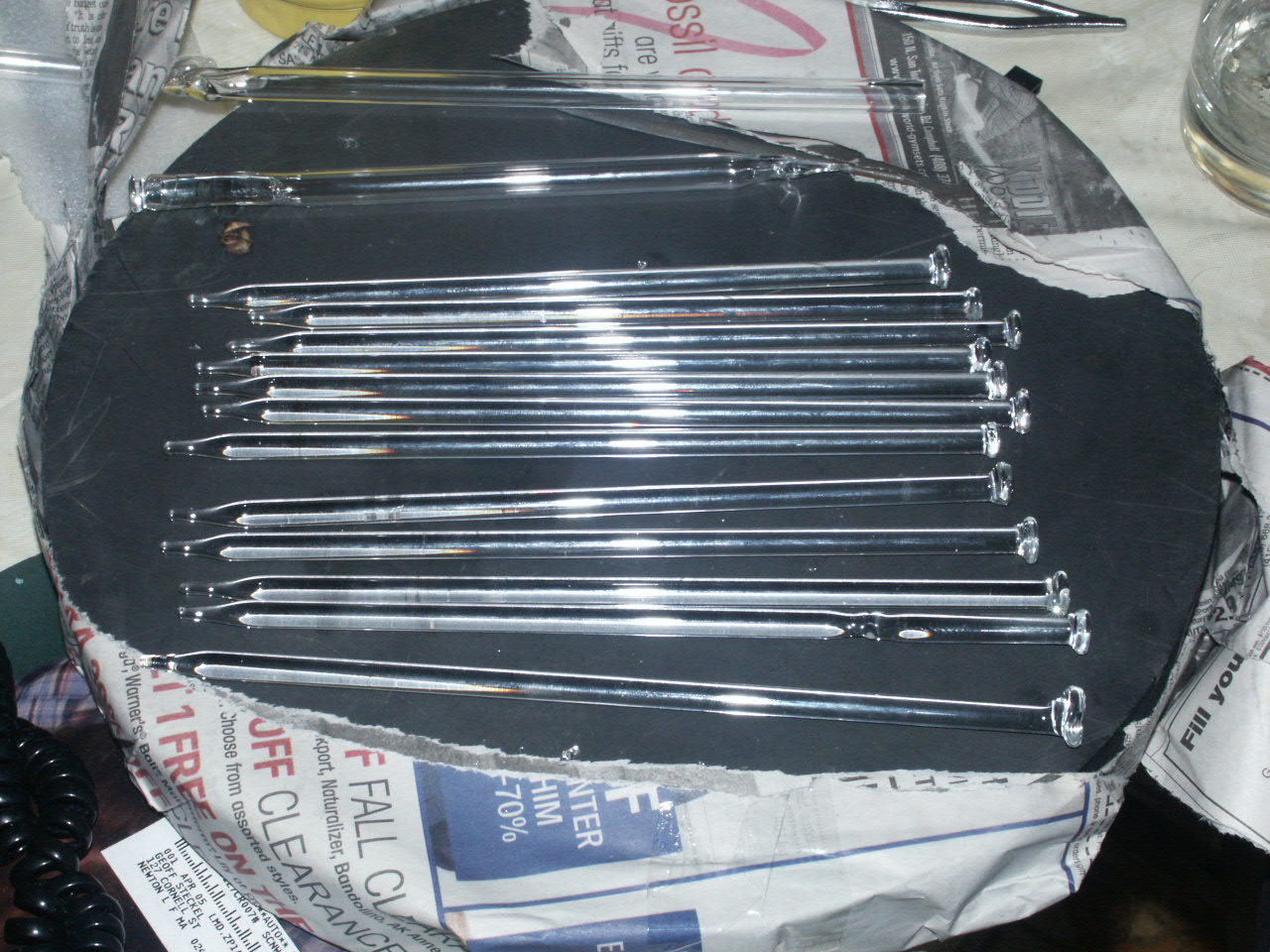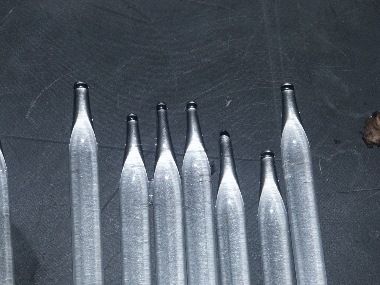 Closeup Points of First Run of Plain Pyrex Knitting Wands